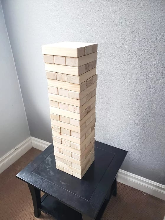 This rental includes 54 precision-crafted polished hardwood blocks, each one over 14 times the volume of a Classic Jenga® block.