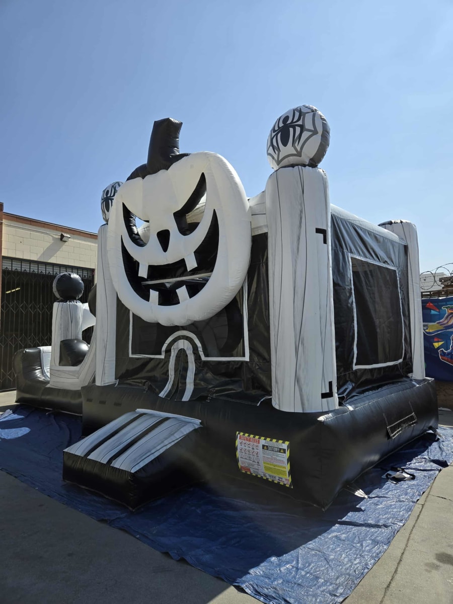 Limited availability for peak Halloween dates. Book now to secure a crowd-pleasing, high-impact attraction. The Black and Silver Pumkin Jumper Slide is your go-to Scary jumper slide for memorable seasonal events. 🎃👻