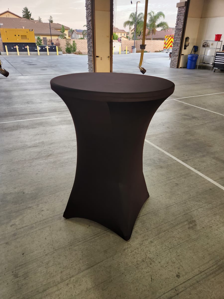 Transform your special occasions into unforgettable experiences with our elegant cocktail tables. Whether you're planning a wedding, corporate event, or an intimate gathering, our Cocktail Table Rentals in Eastvale, Corona, Norco, Jurupa Valley, Ontario, Chino Hills, Rancho Cucamonga, Chino, Fontana, Riverside are the perfect choice to add sophistication and style to your event. Our tables are designed to impress, featuring sleek lines and a chic black expandable linen that complements any decor theme.